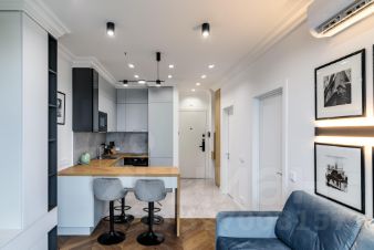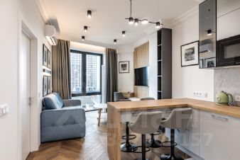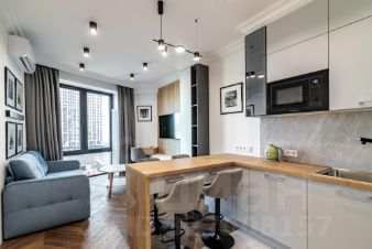Сдается видовая, дизайнерская квартира от Лондонской студии дизайна с просторной кухней-гостиной и отдельной комнатой, расположенная на 27 этаже ЖК бизнес-класса "Савеловский Сити".