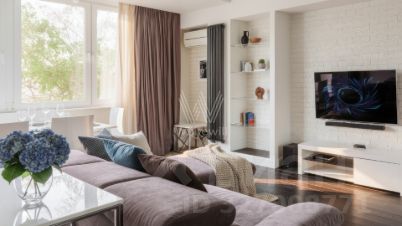 Квартира с одной спальней в престижном районе Хамовники. Квартира общей площадью 66 м² располагается на 4-м этаже, откуда открываются виды на тихий зеленый двор. Интерьеры комнат оформлены в современном стиле в нейтральных оттенках, создающих уютную атмосферу. Здесь есть всё для вашего комфорта: стильная мебель, телевизор, лаконичный кухонный гарнитур со встроенным холодильником, посудомоечной машиной, плитой и духовым шкафом, а также система подогрева полов и кондиционер. Планировка включает кухню-гостиную, спальню с ванной комнатой, гостевой санузел, гардеробную и холл. Доступно машиноместо в охраняемом дворе.