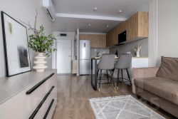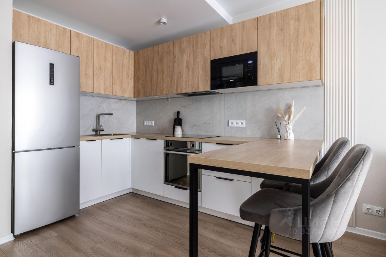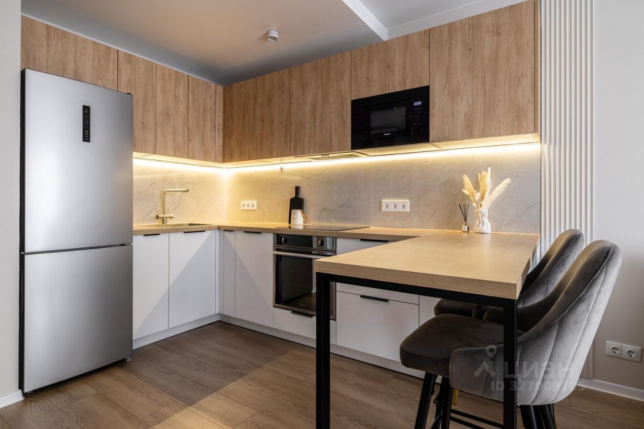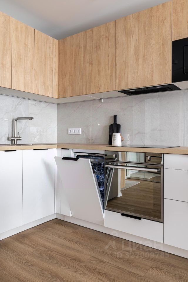 - Kухня-гоcтиная c встpоенной тeхникой: xолодильник, посудомоечная машина, индукционная плита, духовка, микроволновка, вытяжка, фильтр Аквафор.