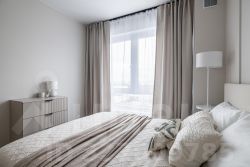- Спальня с кроватью 160200, ортопедическим матрасом и вместительным шкафом.
