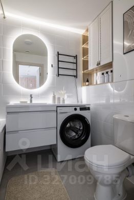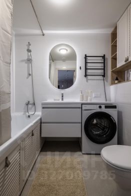 - Современная ванная с новой сантехникой, стиральной машиной и полотенцесушителем.