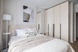- Много систем хранения — шкафы, кровать с подъёмным механизмом.