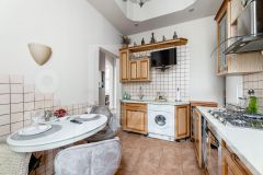 В квартире: С мебелью, Парковка, Посудомоечная машина, Стиральная машина, Сушильная машина, Бойлер, Спутниковое/кабельное телевидение, Кондиционер, Видеонаблюдение, Интернет, Можно с детьми, Ванна, Интерьер в современном стиле, Кухонная мебель, Окна на улицу, Окна во двор
