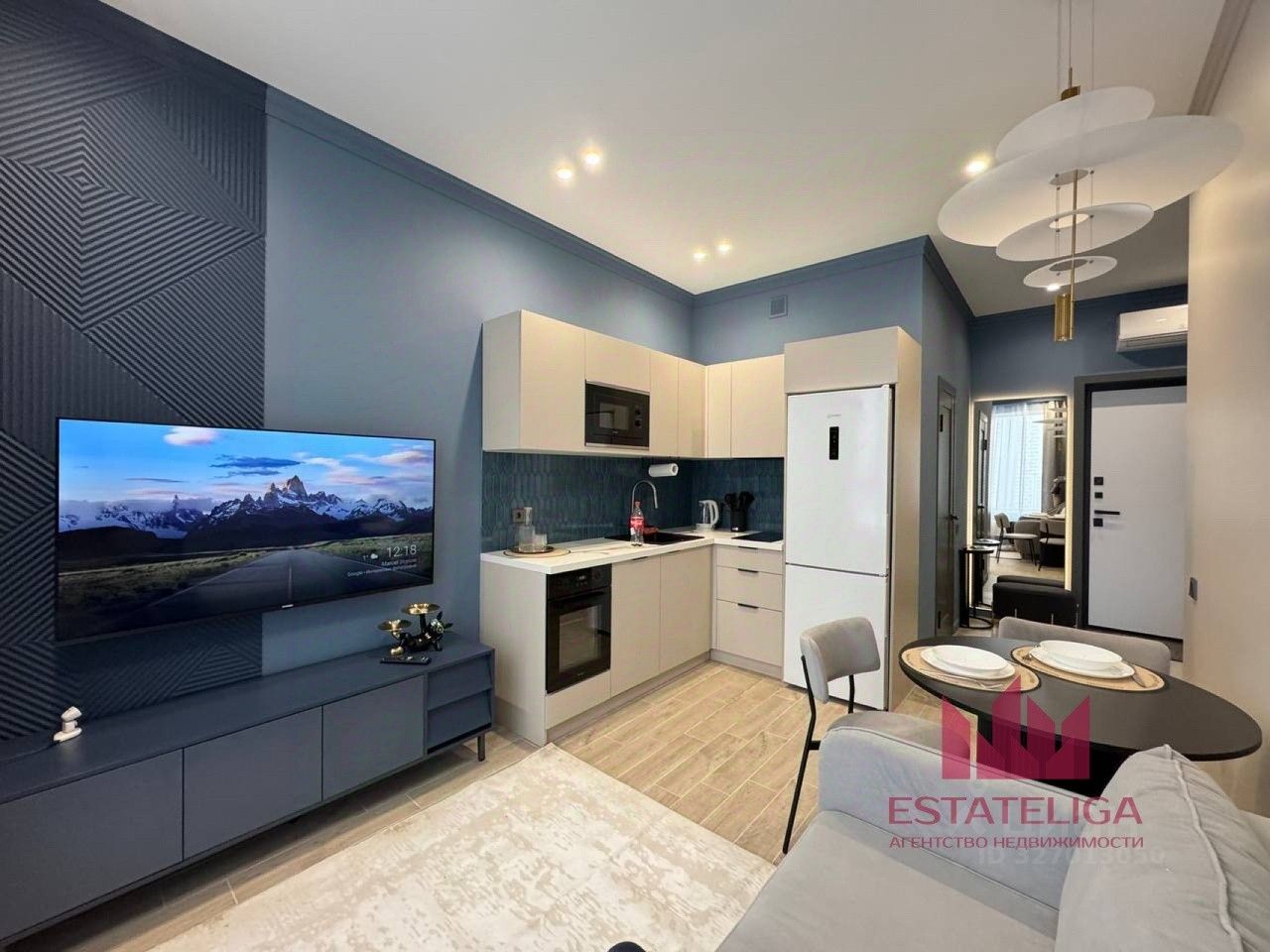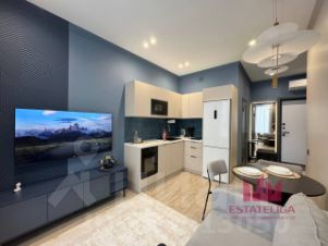 В квартире выполнен дизайнерский ремонт, высокие потолки 2.86 метра и панорамные окна с видом на спокойный двор. Пространство общей площадью 35 м² грамотно зонировано: уютная гостиная-спальня 12 м² и спальня 10 м². Квартира полностью укомплектована новой качественной техникой и мебелью: есть кондиционер, стиральная и посудомоечная машины, холодильник, телевизор, интернет, а также вся необходимая кухонная и корпусная мебель.