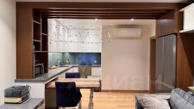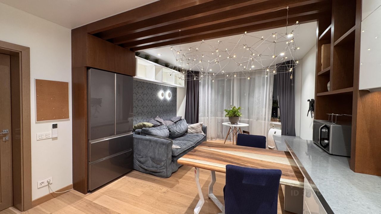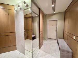 Квартира выполнена в дизайнерском стиле и полностью готова к комфортному проживанию. Внутри просторная кухня площадью 20 кв. м., где есть вся необходимая мебель и техника: холодильник, посудомоечная машина и стиральная машина. В комнатах также имеется мебель, а кондиционер создаст комфортную температуру в любое время года. Планировка включает один совмещенный и один отдельный санузел, где установлена ванна. Дополнительным плюсом является наличие лоджии, окна выходят как на улицу, так и во двор.