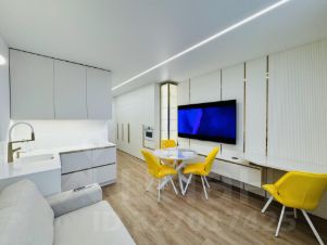 Площадь составляет 25м2. Квартира имеет всю необходимую мебель и технику. В студии установлены: