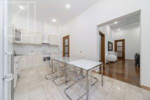 Планировка: гостиная-кухня, три спальни, гардеробная, три санузла. Потолки 3.6 м. Окна выходят в тихий двор. Ремонт выполнен в современном стиле. Квартира полностью меблирована и оснащена всей необходимой техникой.