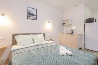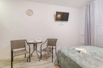 - Апартаменты укомплектованы электрической плитой, чайником, телевизором, холодильником и микроволновкой.
