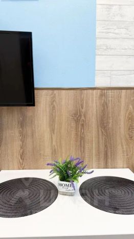 Студия полностью оборудована для комфортного проживания: телевизор, бесплатный wi-fi, стиральная машина, утюг, фен, варочная панель, чайник и микроволновка. Есть штопор и бокалы. Регулярная уборка профессиональной химией и дезинфекция от насекомых, а также смена белья на чистое и свежее проводятся перед каждым заездом.