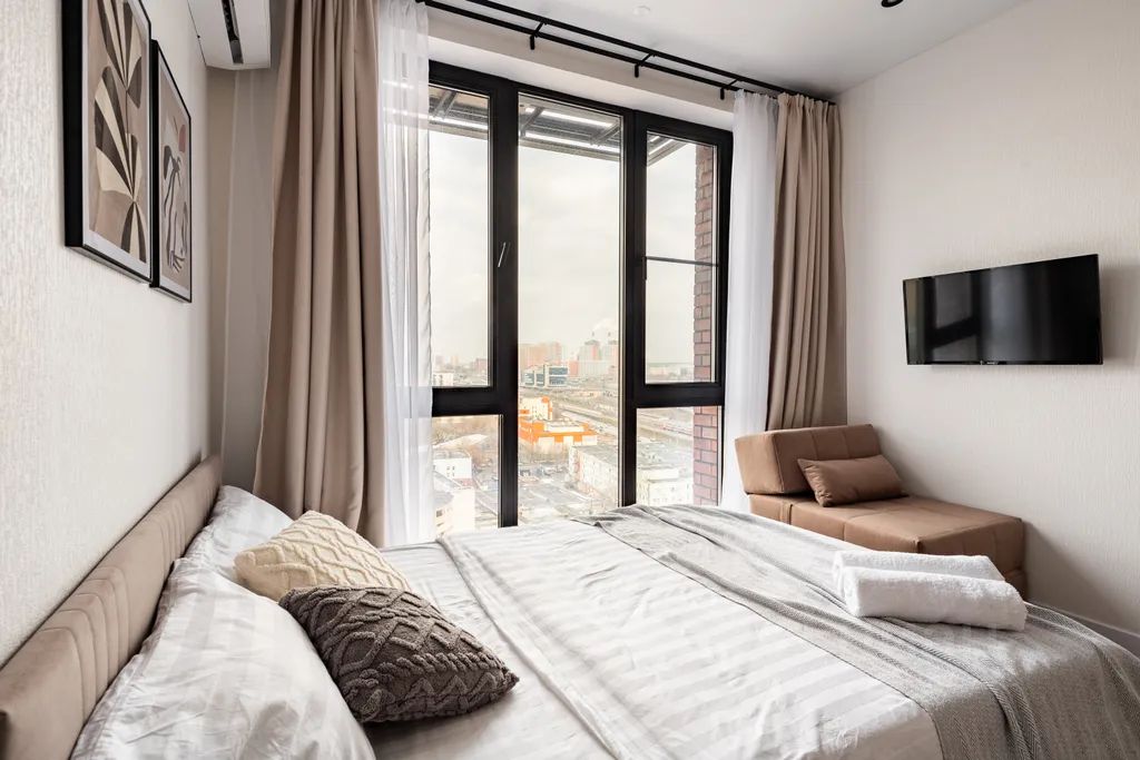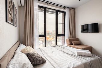 Просторная квартира оборудована двуспальной кроватью с ортопедическим матрасом, блэкаут шторами, чистым постельным бельём, тапочками, посудой на 4 персоны, Wi-Fi и телевидением с заботой о вашем комфорте.