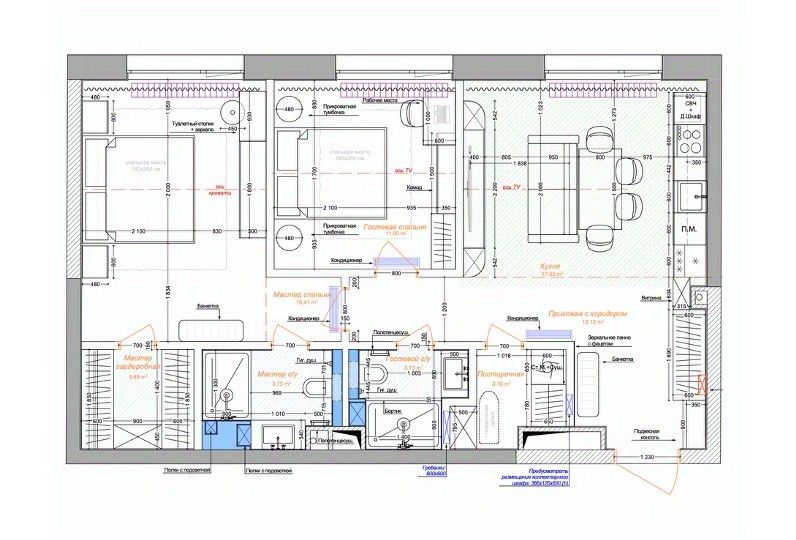 - Гардеробная + Встроенные шкафы (в спальне + в гостиной) + Антресольные шкафы и обувница в прихожей - отвечают за хранение ваших вещей