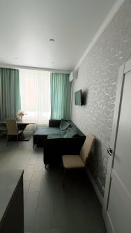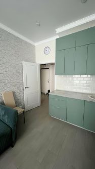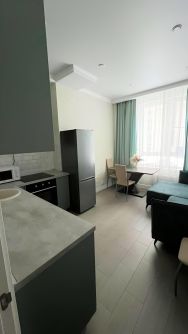 В квартире кухня-гостиная и спальня. Квартира сдаётся с новой техникой и мебелью.