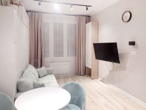 В просторной студии есть все необходимое для комфортного проживания 1-2 человек: