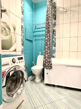 Квартира радует современным ремонтом и полностью оборудована для комфортного проживания. В просторной кухне площадью 12 кв. м есть вся необходимая мебель и техника: холодильник, телевизор и стиральная машина. В комнате также установлена мебель, а из окон открывается вид на тихий двор, что обеспечит вам спокойный отдых. В ванной комнате установлена ванна, что идеально для расслабления после долгого дня.