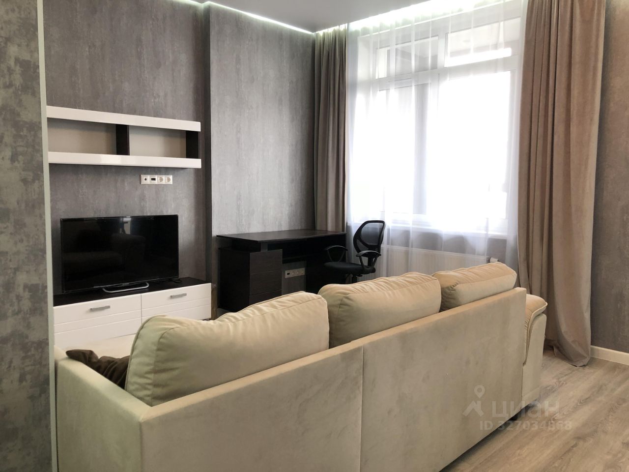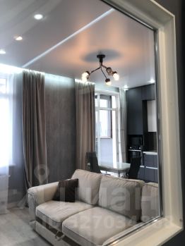 Планировка: Просторная гостиная-студия совмещённая с кухней и небольшая уютная спальня с двухспальной кроватью и тумбочкой. Совмещённый санузел с ванной. Кухонный гарнитур, встроенная бытовая техника: холодильник, духовой шкаф, плита с вытяжкой, (стеклокерамика), стиральная машина, посудомоечная машина, большой раскладной диван, стойка с ТВ. Небольшая гардеробная комната с наполнением.
