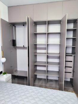 В спальне удобная двуспальная кровать, с подъемным механизмом и ортопедическим матрасом, вместительным шкафом.