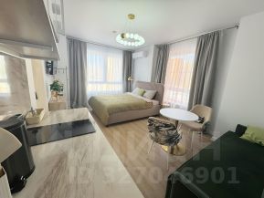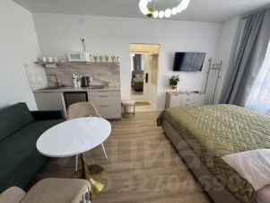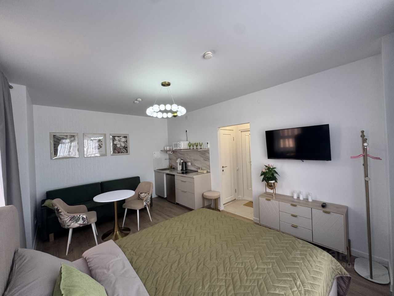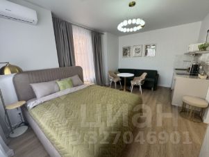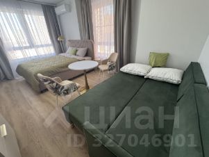 Стильная и уютная студия в современном доме — идеальный вариант для тех, кто хочет остановиться в Москве с комфортом и в красивом интерьере. Пространство оформлено в спокойных серо-бежевых тонах с зелёными акцентами и мягким светом — атмосфера как в хорошем отеле.