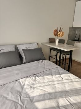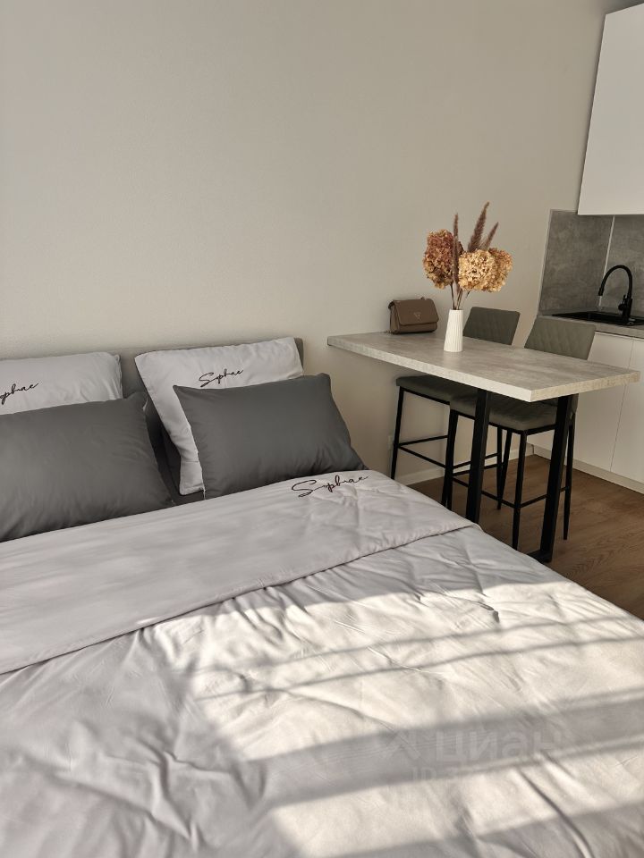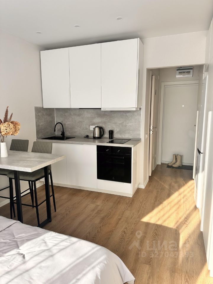 Пространство студии грамотно организовано: есть вся необходимая мебель. В квартире установлена современная техника: холодильник, телевизор и стиральная машина, духовой шкаф, варочная панель. Ванная комната оснащена душевой кабиной, что удобно и практично.