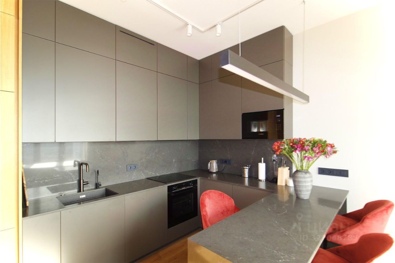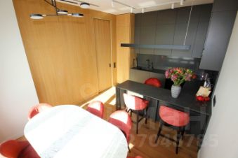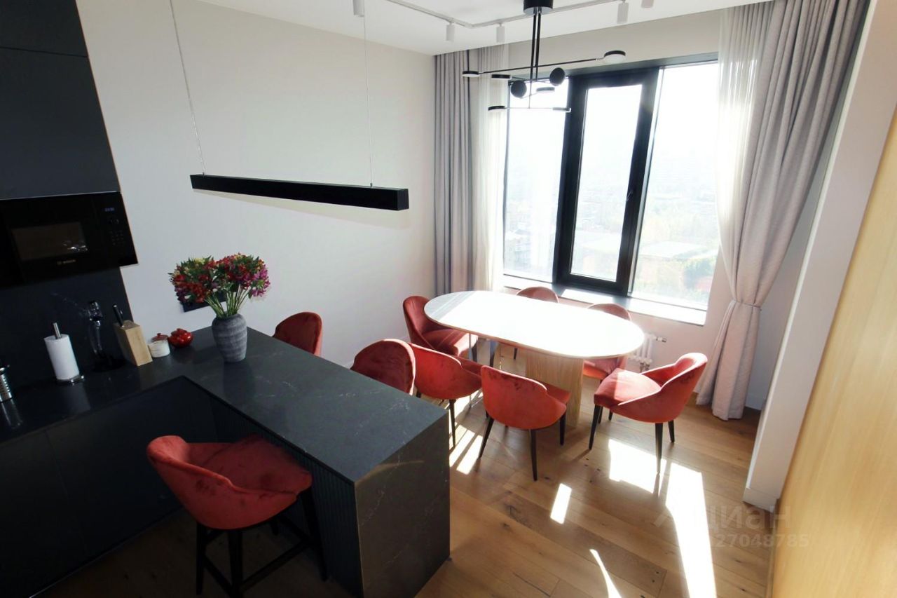 В квартире просторная кухня с большим столом для приёма гостей. Современная встроенная техника Bosch, есть посудомоечная машина, микроволновка, духовка, 2 больших телевизора, центральное кондиционирование, закрытая гардеробная. Зонированное освещение. Кровать в спальне 160 см, хороший дорогой матрас. "Мягкий уголок" на лоджии для утреннего кофе с видом на Москву и парк.