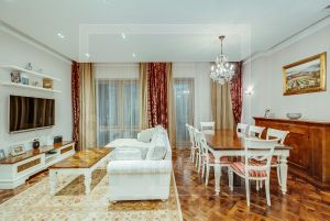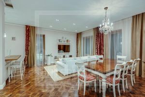 ID 35162. Предлагается четырехкомнатная квартира в престижном жилом комплексе "Садовые Кварталы" в историческом районе Хамовники. Это эксклюзивное предложение порадует любителей комфорта и стиля. Квартира располагается на четвертом этаже, обладает общей площадью 180 квадратных метров и окнами, выходящими сразу на три стороны света, обеспечивая великолепную инсоляцию пространства в течение всего дня. Пространство квартиры грамотно спланировано и включает просторную гостиную, функциональную кухню, две уютные спальни, удобную рабочую зону-кабинет, который легко превращается в дополнительную гостевую комнату, две полноценные ванные комнаты и отдельный гостевой санузел. Каждый уголок продуман до мелочей и оборудован современной премиум-класс мебели и техники. Особое внимание уделено деталям отделки: использованы исключительно качественные натуральные материалы, подчеркивающие атмосферу домашнего тепла и уюта. Высокие потолки, большие панорамные окна открывают вид на внутренние территории комплекса с зелеными зонами отдыха и тихими прогулочными аллеями. Для владельцев предусмотрено одно удобное машиноместо в охраняемом подземном паркинге, исключающем необходимость беспокоиться о парковке автомобиля возле дома. Комплекс представляет собой уникальный пример городской среды нового поколения: территория освобождена от автомобильного движения благодаря грамотному проектированию подземных проездов. Жителей ждут ухоженные зеленые зоны с декоративным водоемом, тенистыми деревьями и благоухающими клумбами. В непосредственной близости расположены любимые места москвичей: бары, гастрономические заведения, культурные учреждения, фитнес-клубы и образовательные площадки для детей всех возрастов. Отличная транспортная доступность района позволяет быстро добраться до любой точки города. "Садовые кварталы" — идеальный выбор для тех, кто ценит комфорт, качество и красоту своего жилища.