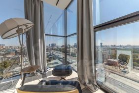 Высота потолков 3,4 м. Панорамные окна от пола до потолка открывают прекрасный вид на город.