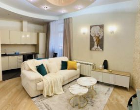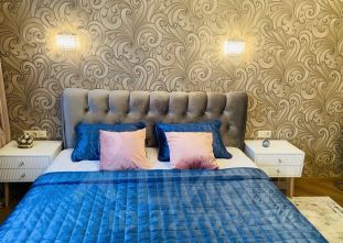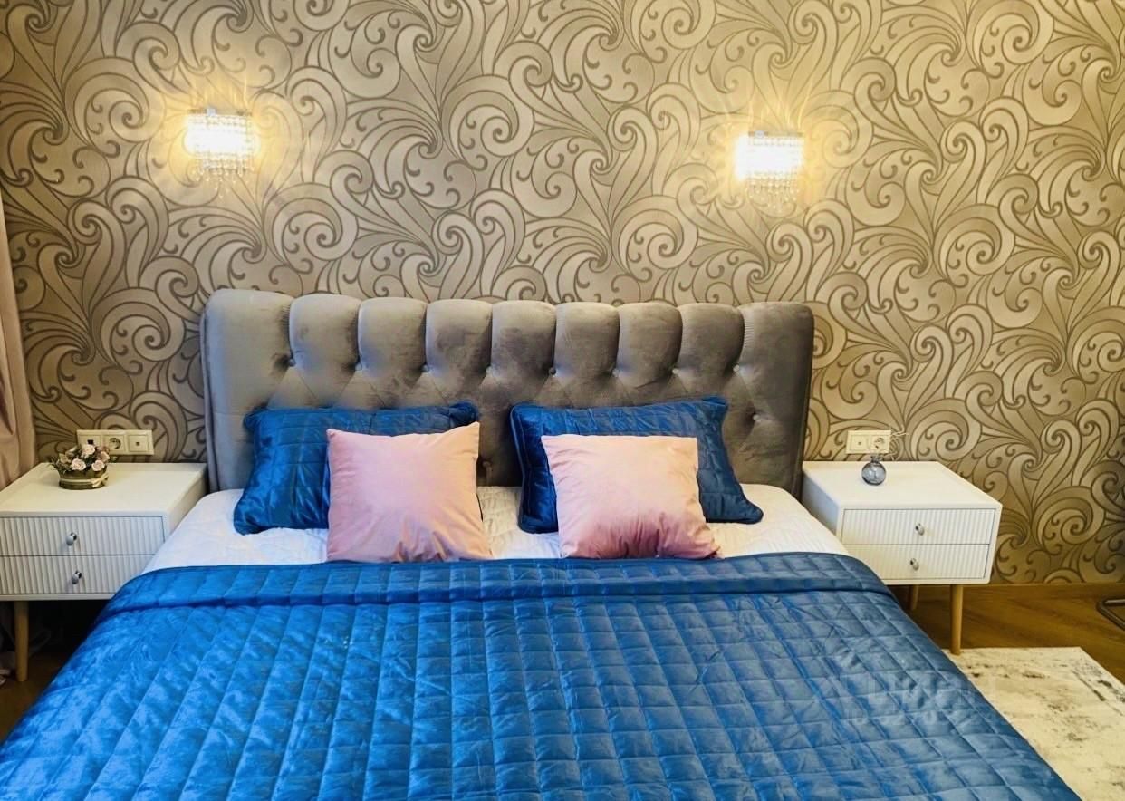 Стильная 2-х комнатная кварта с дизайнерским ремонтом !! Просторная кухня гостиная , 2 вместительный гардеробные , одна из них в спальне - поместится все !!! Большая светлая спальня с новой большой кроватью и дорогим матрасом . Аскона 1,8 м на 2 м из самой комфортной премиальной серии Serta.