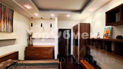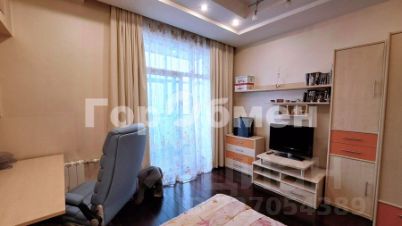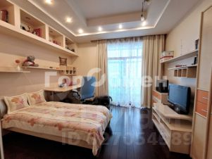 2 изолированные комнаты спальня 18 кв.м. и детская 14 кв.м., кабинет 6 кв.м., 2 санузла: гостевой и большой санузел с ванной и душевой кабиной, подсобное помещение со стиральной машиной и дополнительным холодильником, вместительная гардеробная, в прихожей - большой встроенный шкаф.