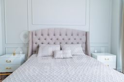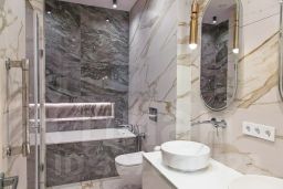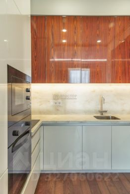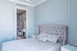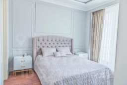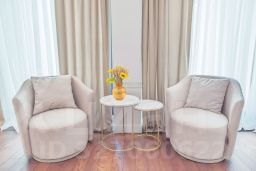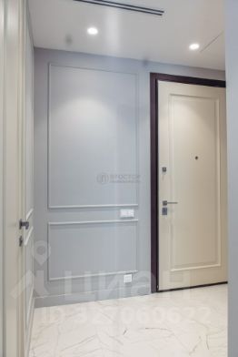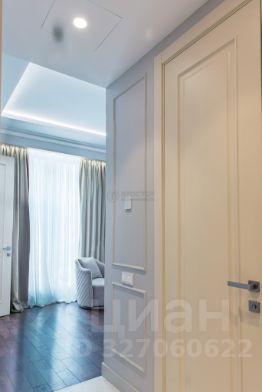 Интерьер выполнен в современном стиле с элементами классики: тёплый паркет, нейтральная палитра, дизайнерская мебель, встроенная техника. Установлена система приточно-вытяжной вентиляции с климат-контролем.