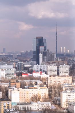 Из кухни-гостиной открывается захватывающий вид на Останкинскую башню и север Москвы — редкая панорама, которой хочется делиться.