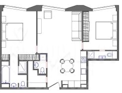 Общая площадь 82,6 (2 спальни по 15 кв.м., гостиная 20 кв.м., кухня 15 кв.м., с/у 9 кв.м.)