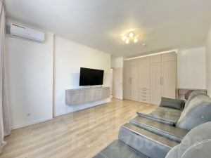 Удачная планировка: большая гостиная со шкафами для хранения вещей, дорогой диван и кресло, также установлен кондиционер; качественный кухонный гарнитур с фасадами МДФ, усиленными выдвижными шкафами и качественной фурнитурой с доводчиками, 2-х камерный холодильник, встроенные СВЧ, духовой шкаф, варочная панель; удобная прихожая со встроенной мебелью; совмещенный сан узел с ванной, умывальником и установлена стиральная машина автомат.