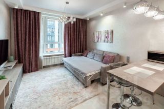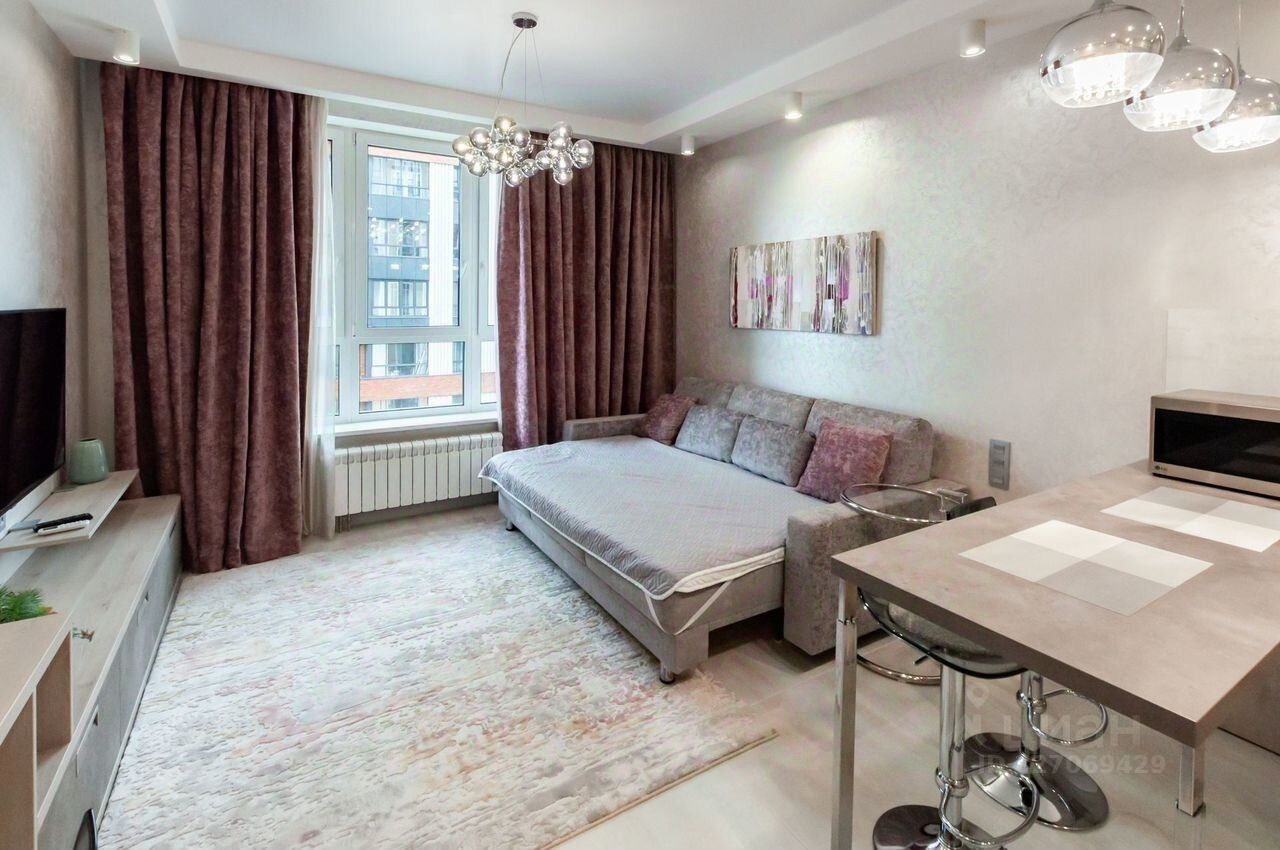 ЖК "Сердце Столицы". Закрытая охраняемая территория. Круглосуточное видеонаблюдение. Подземный паркинг. В подъезде консьерж. Качественный ремонт, студийная планировка. Развитая инфраструктура (Супермаркеты, кафе, салоны красоты, фитнес-клуб и многое другое).