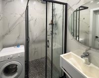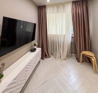 Квартира оборудована всей необходимой техникой и мебелью для комфортного проживания: Заезжай и живи! А именно: большая гардеробная, двухспальная кровать с зонированием, телевизор, кухонный гарнитур, стиральная и посудомоечная машина. Имеется духовой шкаф и варочная панель.