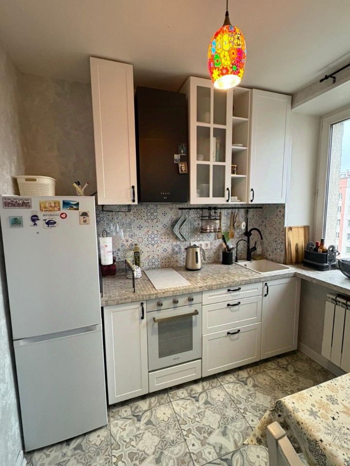 В квартире сделан дорогой качественный ремонт ( 2 года назад), есть вся необходимая мебель на кухне и в комнатах. Кухня укомплектована всей необходимой техникой. Балкон застеклен. Окна выходят во двор. Есть 3-я изолированная комната (при просмотре).