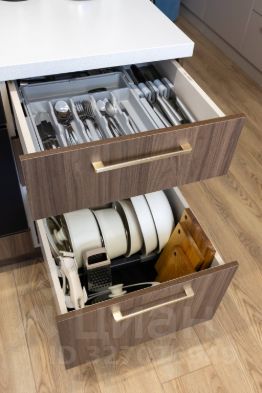 Полностью оборудованная кухня: холодильник, духовка, варочная панель, посудомоечная и микроволновая печи, чайник