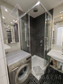 Санузел: душевая, тёплый пол, накопительный водонагреватель, гигиенический душ.