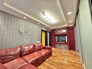 Проработанный дизайнерский ремонт из качественных материалов: большое количество зон для хранения, кровать 2*2 метра, диван раскладывается под два спальных места, в детской комнате просторная кровать.