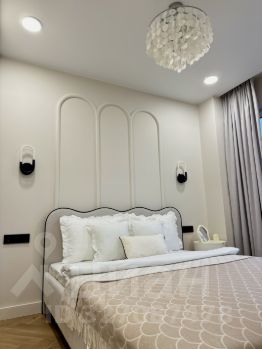 Спальня создана для спокойных и приятных пробуждений. В ней установлена кровать размером 160 на 200 с подъёмным механизмом и ортопедическим матрасом Askona. Есть большой шкаф с антресолью, белоснежное постельное бельё, четыре подушки и мягкое одеяло. Бра с тёплым, расслабляющим светом добавляют уюта и спокойствия.