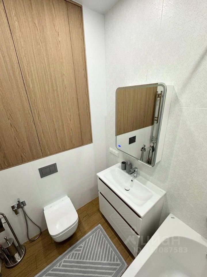 Совмещенный санузел с ванной, зеркалом с подсветкой, инсталляцией и бойлером.