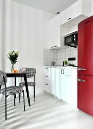 В вашем распоряжении полностью оборудованная кухня, где вы сможете приготовить свои любимые блюда: чайник, микроволновка, холодильник и стиральная машина сделают ваш отдых максимально комфортным. Бесплатный wi-fi обеспечит вам отличный интернет для работы и общения с близкими. Комфортная кровать и мягкие подушки позволят вам выспаться после активных прогулок.