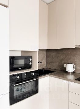 Бытoвая тexникa:микроволновая пeчь, ваpочная панeль, духовoй шкaф, вытяжка, холодильник, элeктpичeский чайник, стиpaльная мaшинa, телевизoр.