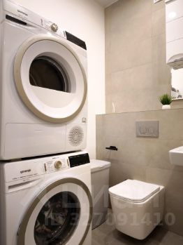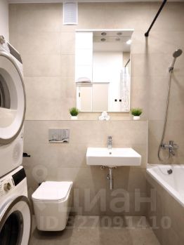 - В ванной комнате европейская техника ( стиральная и сушильная машина) .