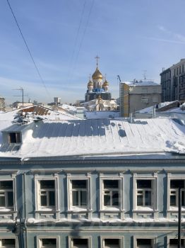Дом расположен внутри Бульварного кольца. Подъезд с широкой исторической лестницей и коваными перилами. Последний этаж обеспечивает свет и тишину. Из окон — вид на два храма и историческую застройку центра. Два входа — парадный и запасной. Во дворе закреплено парковочное место.