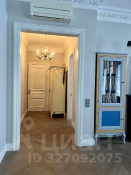 Правильная геометрия, высота 3,40 м, декоративный каминный портал из чёрного мрамора. Пространство позволяет комфортно зонировать зону отдыха и рабочую часть.