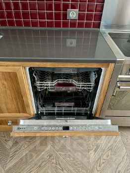 Установлена профессиональная напольная плита Smeg с духовкой и шестью конфорками. Техника Siemens и Liebherr.
