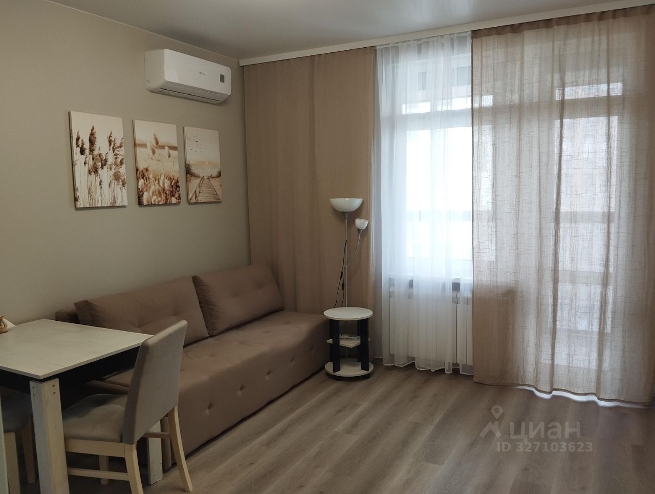 В квартире выполнен качественный ремонт. В комнате и на кухне есть вся необходимая мебель. Квартира оборудована кондиционером, холодильником и стиральной машиной. Санузел совмещенный, в ванной комнате установлена ванна. Окна выходят в тихий двор.