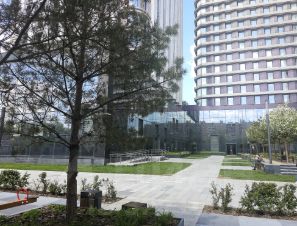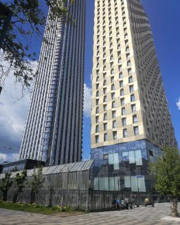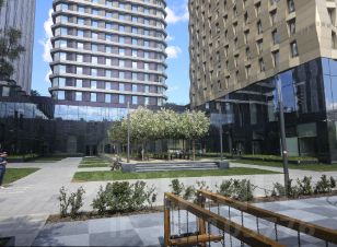 Закрытая охраняемая территория, на которой видеться круглосуточное видео наблюдение на улице и вокруг дома. Прекрасная входная группа с лобби ожидания, пять скоростных лифтов. Так же имеется на придомовой территории трехуровневый подземный паркинг. На благоустроенной территории разбиты газоны и цветники, детская и спортивная площадка.