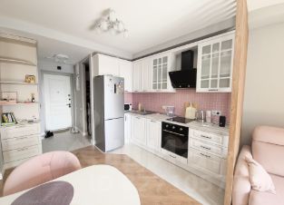 Квартира с прекрасными видовыми характеристиками. Выполнен ремонт по евро стандарту из высококачественных материалов, укомплектована всей необходимой мебелью и техникой, кондиционер, бойлер, в кухни-гостиной раскладывающийся диван, в спальне двуспальная кровать, встроенный глубокий шкаф, гардеробная.