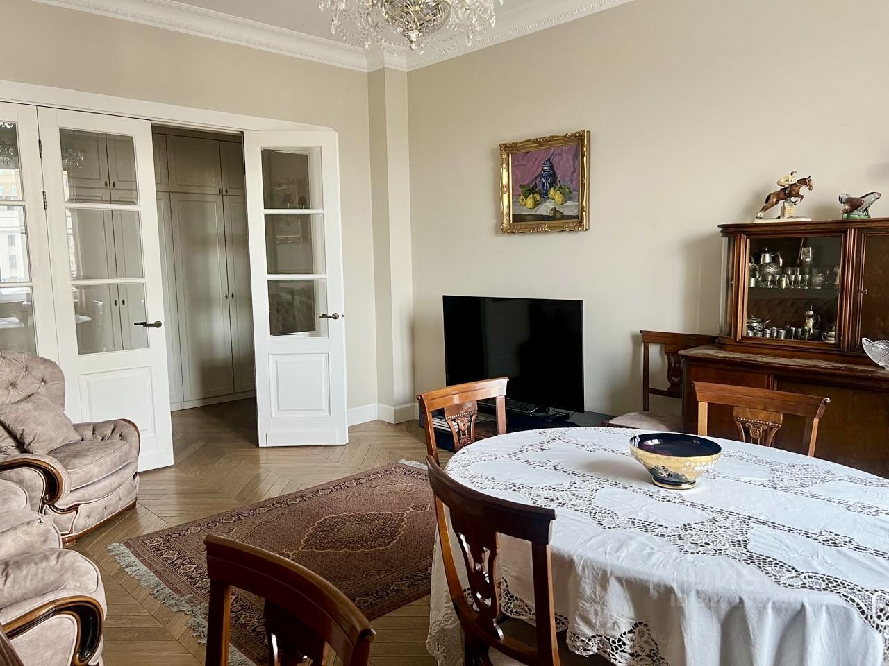 Сдаётся просторная 3-комнатная квартира площадью 105 м² в статусном сталинском доме на первой линии Фрунзенской набережной. Из окон — панорамные виды на Москву-реку, Парк Горького и Нескучный сад. До метро Фрунзенская — 8 минут неспешной прогулки.