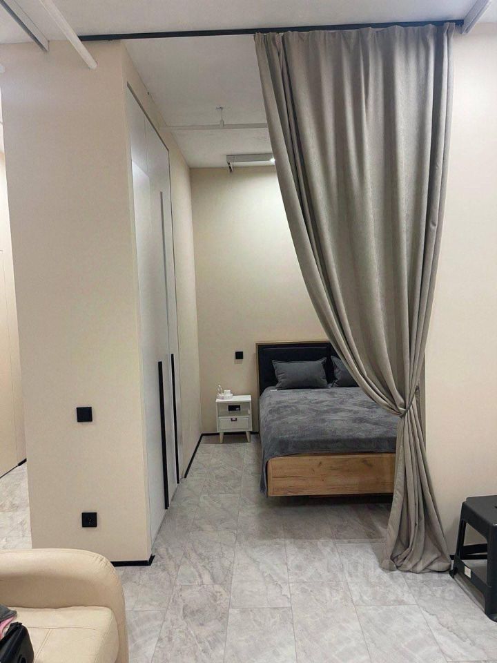 Высота потолков — 3 метра. Качественный косметический ремонт, со вкусом подобрана мебель, удобная двуспальная кровать с ортопедическим матрасом, диван раскладывается, встроенные шкафы, двери скрытого монтажа, готовность к заселению с 1 марта 2026 года. В комнате и на кухне-гостиной есть вся необходимая мебель и техника. Для вашего комфорта установлены кондиционер, холодильник, посудомоечная и стиральная машина с сушкой, проточный водонагреватель, а также телевизор.